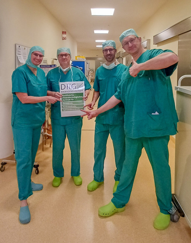Unser Viszeralonkologisches Zentrum mit Darmkrebszentrum und Speiseröhrenkrebszentrum hat die Rezertifizierung nach den Kriterien der Deutschen Krebsgesellschaft (DKG) erneut erfolgreich bestanden. Damit wird die hohe Qualität unserer interdisziplinären onkologischen Versorgung einmal mehr bestätigt. Das Darmkrebszentrum wurde 2016 erstmals zertifiziert, das Speiseröhrenkrebszentrum und das Viszeralonkologische Zentrum folgten 2020.